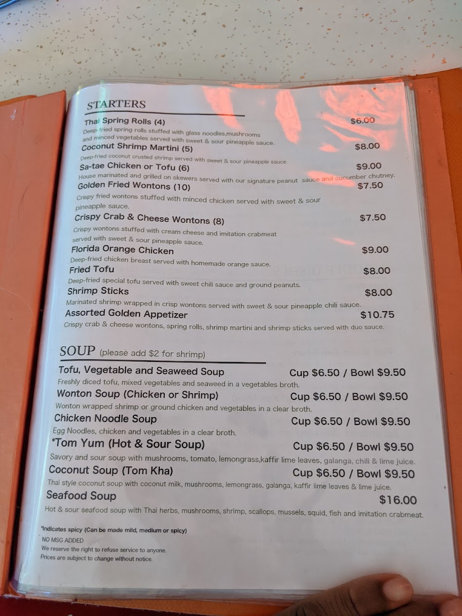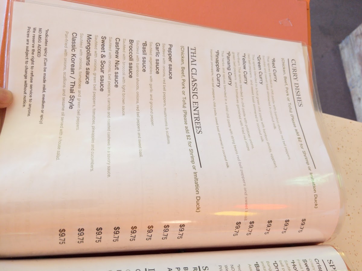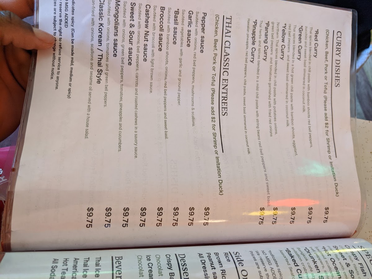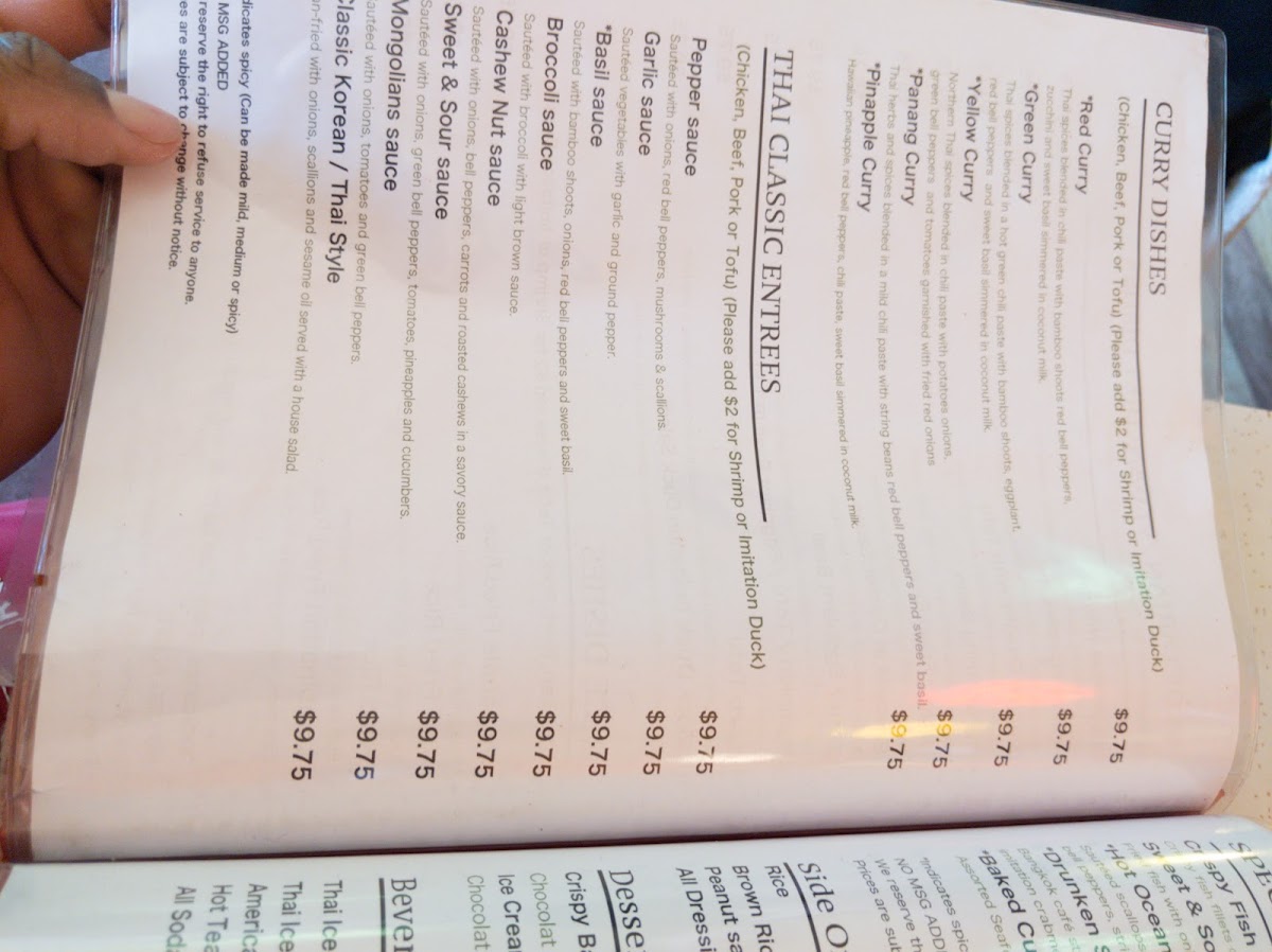 The menu at Rice Avenue Thai & Asian Kitchen offers a delightful range of dishes that highlight the flavors of Thai and Asian cuisine. For soup lovers, there’s the Seafood Tom Yum, Chicken Noodle Soup, and the creamy Seafood Tom Kha. The curry dishes are a standout, with options like the Pumpkin Curry, Panang Curry, Pineapple Curry, and the vibrant Green Curry. The Thai classic entrees, such as Pepper Sauce, Classic Korean Thai Style, and Garlic Sauce, are perfect for those seeking familiar yet exciting flavors. Noodle enthusiasts can enjoy dishes like Chow-Mein, Crystal Pad Thai, and the flavorful Pad Woon-Sen. For rice lovers, there are choices like Fried Rice, Combination Fried Rice, and the tropical Pineapple Fried Rice. The dessert menu features the indulgent Mango Sticky Rice, while the starters include crispy favorites like Crispy Crab & Cheese Wontons and Coconut Shrimp Martini. Vegetarians and vegans can enjoy dishes such as Larb Tofu, Tofu String Bean, and Pumpkin Tofu & Eggplant Basil (PTE). The salad selection includes refreshing options like the Thai Salad and Lemongrass Shrimp Salad. Specialty dishes like Hot Ocean Basil and Drunken Spaghetti add a unique twist to the menu. To complement the meal, there are refreshing beverages like Thai Ice Tea and Thai Ice Coffee. With a wide variety of options, Rice Avenue Thai & Asian Kitchen offers something for every palate.